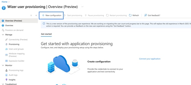 Click the Provisioning tab and then click the New configuration: