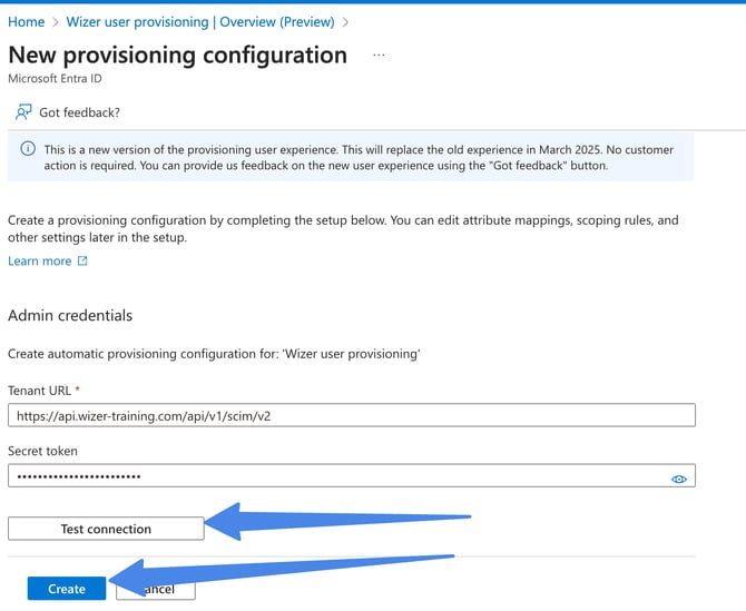 For Tenant URL enter: https://api.wizer-training.com/api/v1/scim/v2