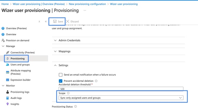 Select the Scope option in the Provisioning Settings section