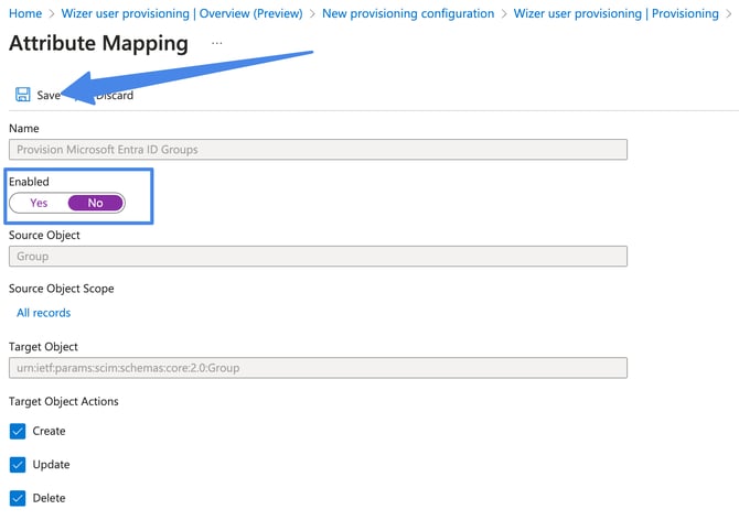 (recommended) If you don’t want to synchronize Azure Directory Groups with Wizer departments you can turn off Provision Azure Active Directory Groups