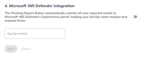 - If Microsoft 365 Defender Integration is enabled, reported emails are also submitted to Defender → Submissions, in addition to the existing ‘Report To Email’ flow and the configured handling action.