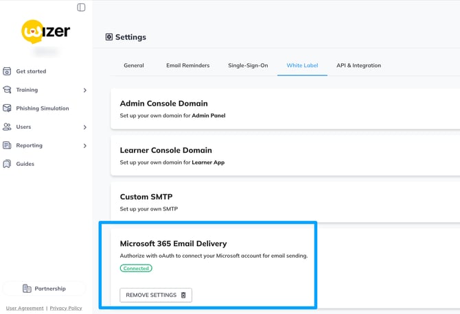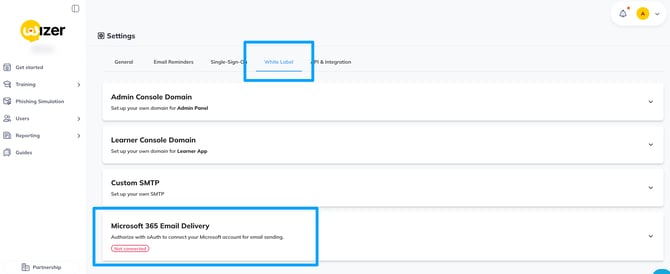 Once in Account settings select White Label and choose Microsoft 365 Email Delivery tab: