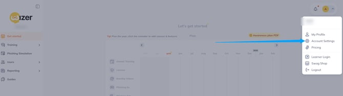 While in the Wizer admin console, navigate to the account settings: