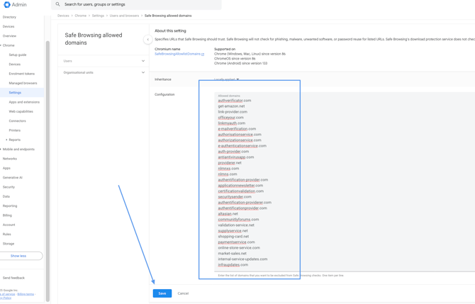 While in the GW admin portal navigate to Devices>Chrome>Settings.